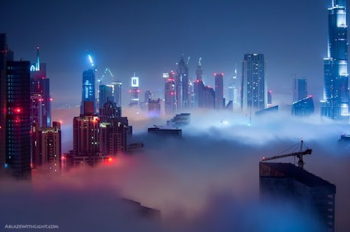 The City In The Clouds Dramatic Images Of Dubai S Skyscrapers Poking Through A Carpet Of Fog At Night Dubai Skyscraper Skyscraper Skyline